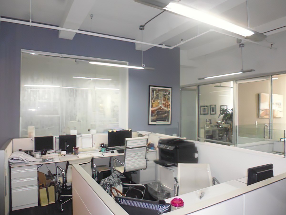 The 7,500 SF. of pre-built space (as seen in the photos) has been constructed to a high standard which has implemented glass throughout. Full length glass double doors (with your company name on it) give access to the office from the elevator banks. Staff and guests are welcomed by a dedicated marble reception desk / entry area which can accommodate a couch or pair of chairs for guest seating. The use of of a sputnik chandelier coupled by a high loft ceiling gives the entrance a stylish flare while remaining subtle in presentation. This then opens onto a corridor which features glass on two sides - of which can be found both a conference room and the main open working area. This flow allows you to expedite guest into the conference room without disturbing staff or day to day processes. Outside of the conference area there is room for workstations that can range in number from 14 to 24 - with the higher end of that layout remaining roomy and comfortable.