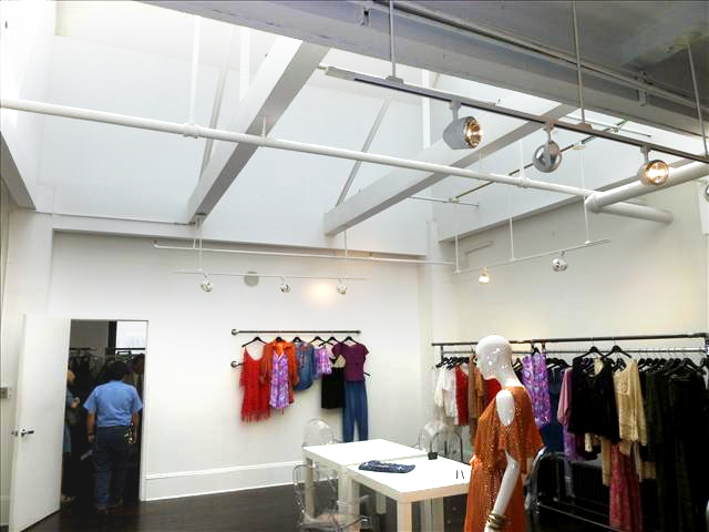 Partial Penthouse floor unit offering a long term commercial loft for use in displaying products within a well maintained Showroom Building. This elegant showroom features a wide open floor plan at the interior while the perimeter consists of a middle office, and corner office or sideroom. The layout we find helps to provide a welcoming feel with ample open space. The loft has been built with dark hardwood floors, 14' exposed beamed ceilings, and track lighting throughout. Being situated on the top floor this unit also boasts a vaulted skylight allowing for great exposure throughout the day without glare. The build out is recent and in mint condition; the open layout found herein allows for a variety of configuration options.