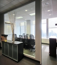 The office features a small reception area near the entrance to greet clients and guests. 1 standard and 3 small perimeter offices with large windows fill the space with natural light. There is also a mail/copy room, IT closet, and a wet pantry. The open bullpen has space for 15 medium or 20 small workstations.