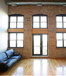 This New York commercial office space is located in the Garment District near the historic Bryant Park. This loft has the original exposed red brick walls, giving this office an authentic feel. Large open views provide an array of natural light. This commercial property was recently renovated and installed with dark wooden floors and a private bathroom.