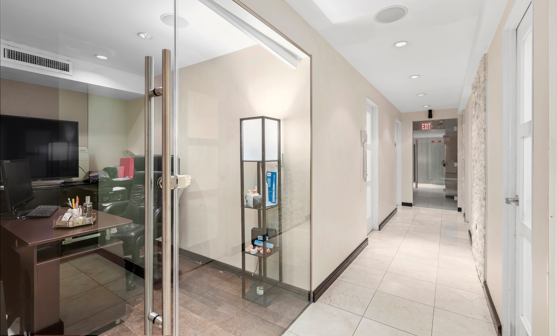 This basement level office is situated on 58th Street between Avenue of the Americas and Seventh Avenue within a AAA Class white glove mixed-use building. The space can be configured into 4 to 5 exam rooms and is flexible enough for a myriad of healthcare requirements. It should be noted that today the space is built-out for a dentist and includes a range of medical equipment; otherwise you will find in the layout the following features - Private Front Desk, Consultation Room, Operatory Room, Recovery Room, OBS Class C Surgical Room. This office can be leased with a term extending out 5 to 10 years and can be rented immediately - great options for those seeking a long term stay with a fast move-in. The space is accessible 24/7 and is manned by a part-time conceirge; entry to the unit is gained via elevator 1 flight down.