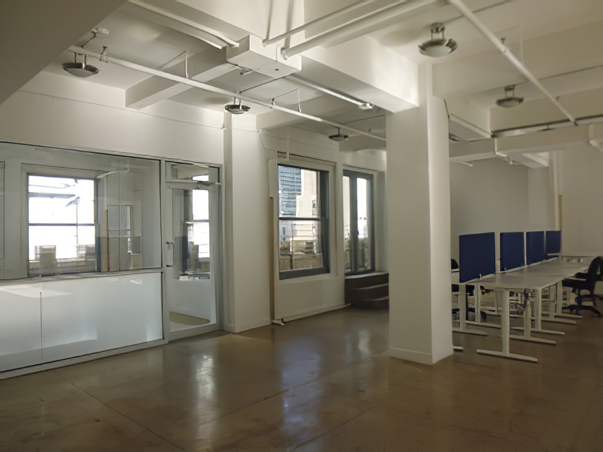 To the left of the entry stands a newly built six-person glass-fronted conference room that connects to a usable outdoor terrace that overlooks the front of the building. The office also features a second office terrace which can be found at the opposing end of the conference room. Throughout the space the floors boast load-bearing concrete with a smooth, polished, tasteful finish that hearkens back to the days when the space was more aligned with Manhattan's industrial past. On the left of the entry there stands a wet panty connected to a hallway that leads into an open room that can be converted to meeting / call room, storage, or as an extra private office. The HVAC system is tenant-controlled which is delivered via exposed brushed ductwork that accentuates the ceilings, helping blend all the design elements into a professional commercial loft space that is not only practical but efficient in layout and cost.